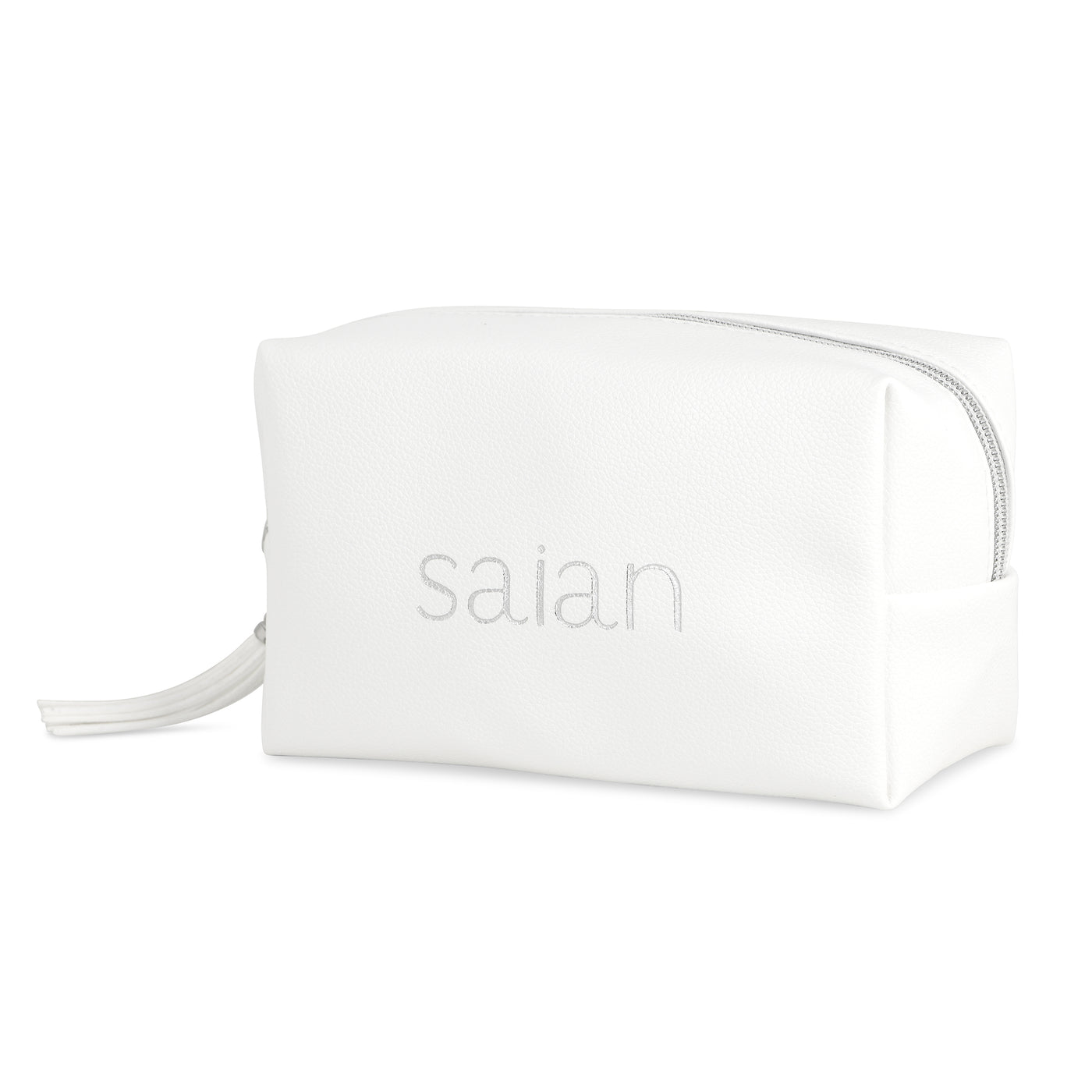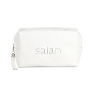 Elevate your skincare routine with the Saian Luxury Vegan Leather Travel Bag—a chic, functional companion designed to hold all your professional skincare essentials in one place. Crafted from premium vegan leather with a soft pebbled texture, this elegant white bag features the embroidered Saian logo in silver thread for a touch of understated luxury.